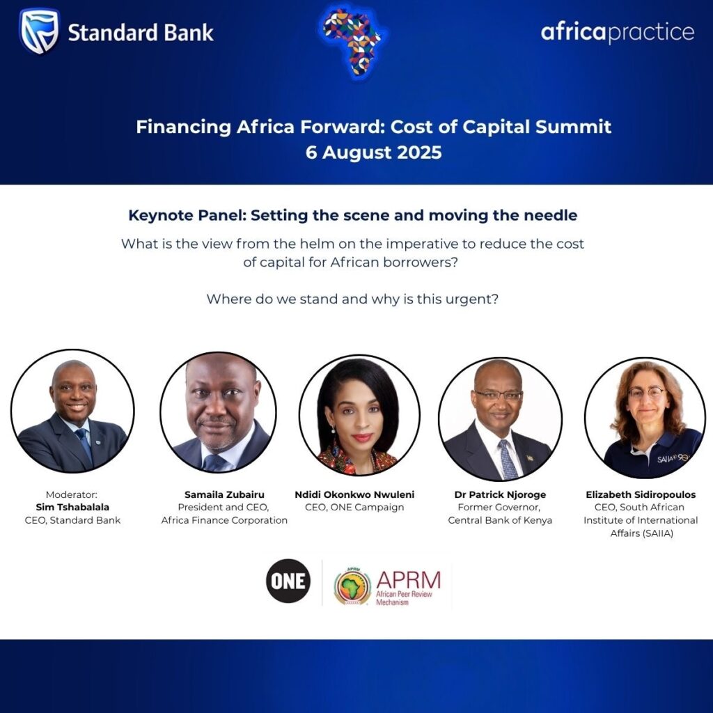 JOHANNESBURG, AUGUST 6 2025 – The Financing Africa Forward Summit, co-hosted by Standard Bank and Africa Practice, in partnership with the ONE campaign and APRM, marks a pivotal moment in the ongoing campaign to address the costs African issuers of debt face.
