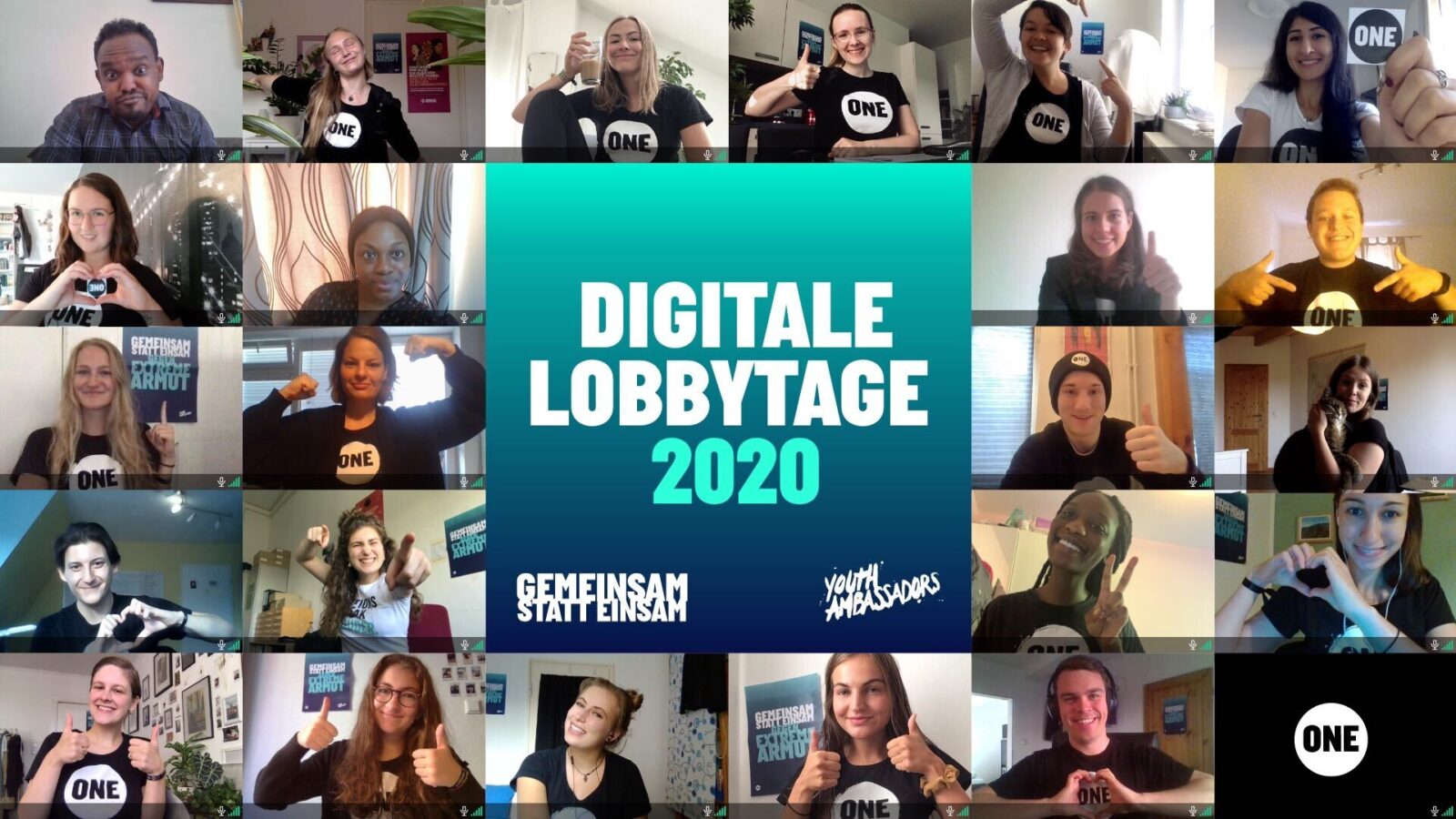 Danke & bis bald Die #ONEActivists haben mal wieder großartige Arbeit geleistet, während sie Gespräche mit Abgeordneten, Live-Events und technische Probleme bewältigt haben Danke für euren Einsatz & eure Geduld während der Lobbytage 2020 #GemeinsamStattEinsam pic.twitter.com/PoOVbI3NA5