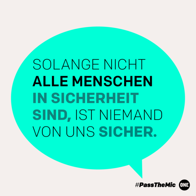 Dies ist eine globale Pandemie, die eine globale Reaktion erfordert. Ruft gemeinsam mit uns zu Maßnahmen auf, um jeden und jede überall zu schützen. Folgt uns auf Facebook und Twitter um bei #PassTheMic auf dem Laufenden zu bleiben.
