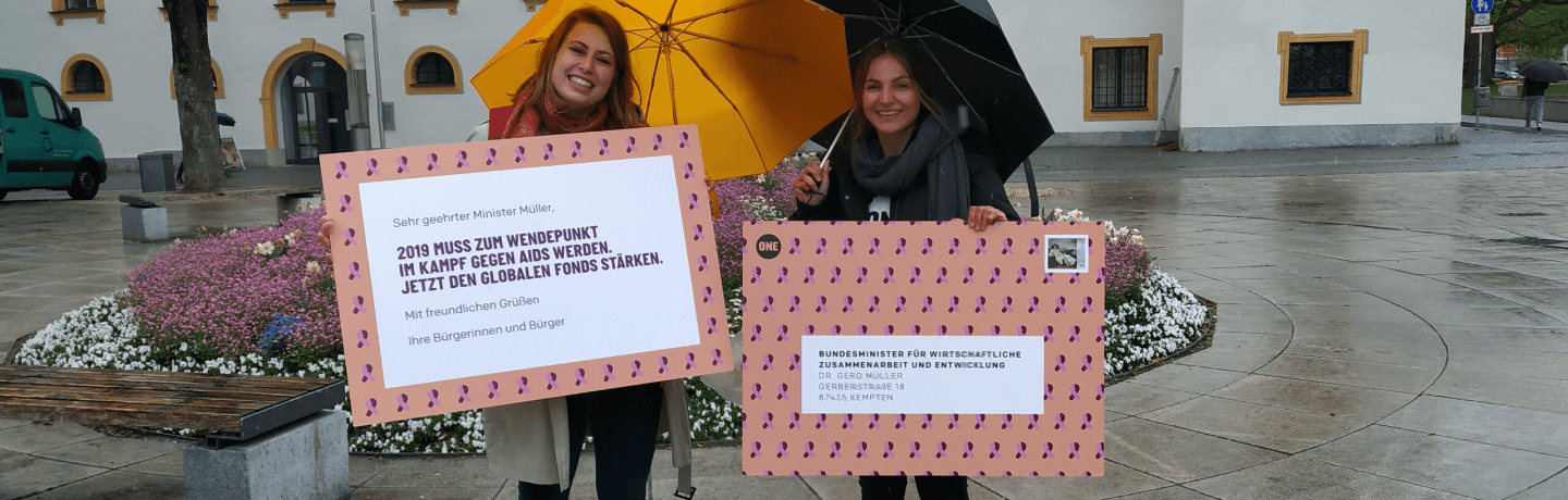 - Mehr als 140.000 ONE-Unterstützer*innen haben unsere Petition unterzeichnet. Mit dieser haben wir Regierungen weltweit dazu aufgerufen, sich für die Bekämpfung von Aids, Tuberkulose und Malaria stark zu machen.