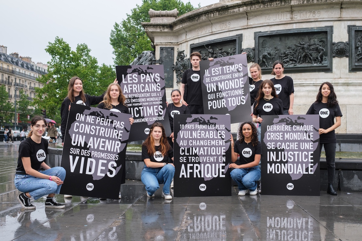 - Le jour du Sommet, les jeunes Ambassadeurs et Ambassadrices de ONE ont réalisé une action coup de poing Place de la République et ont sensibilisé les passant·e·s en distribuant des flyers. Puis ils se sont rendu·e·s au festival de l’ONG Global Citizen au Champ de Mars afin de continuer leur mission d’information et d’échange avec d’autres jeunes.