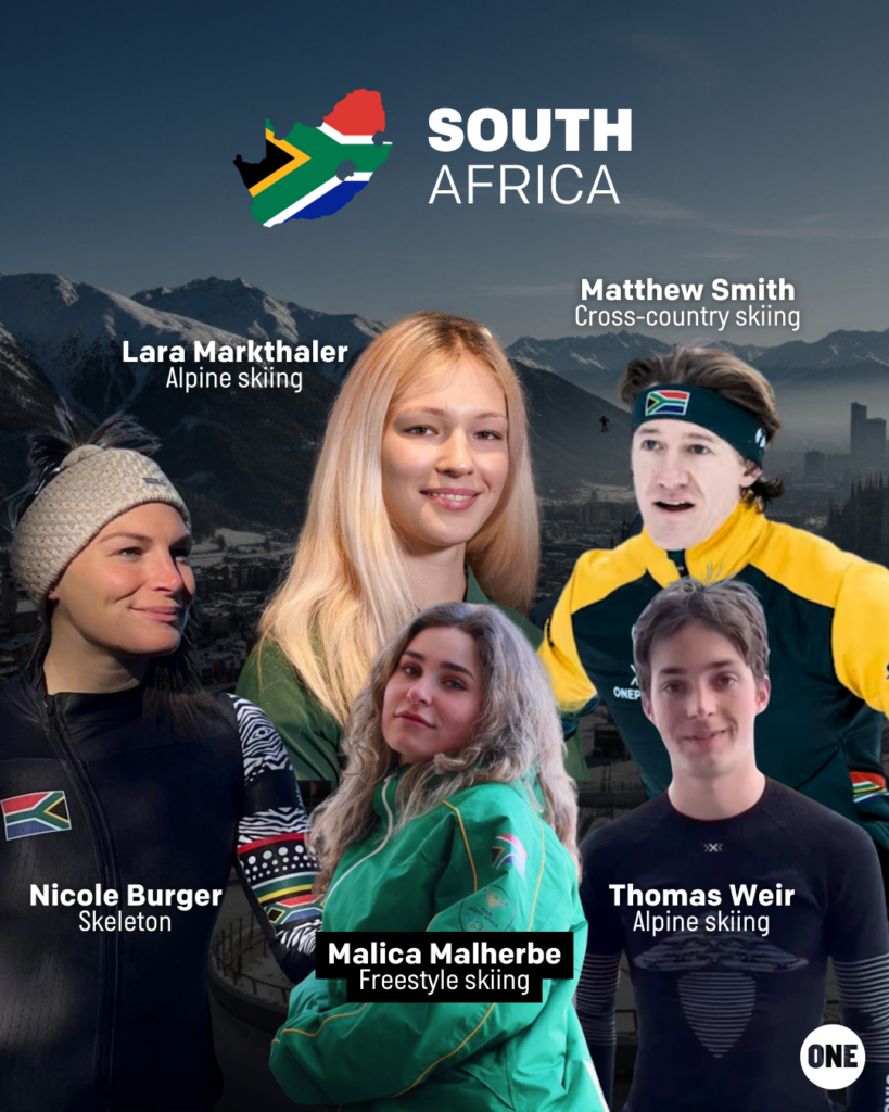 This year’s Olympic athletes from South Africa include Lara Markthaler (Alpine skiing), Matt Smith (Cross-country skiing), Nicole Burger (Skeleton), Malica Malherbe (Freestyle skiing), Thomas Weir (Alpine skiing).