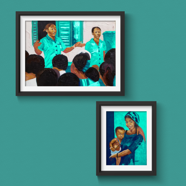 Using photographs of health workers and families provided by Gavi, each artist used their own unique style to tell a visual story. Take a look: