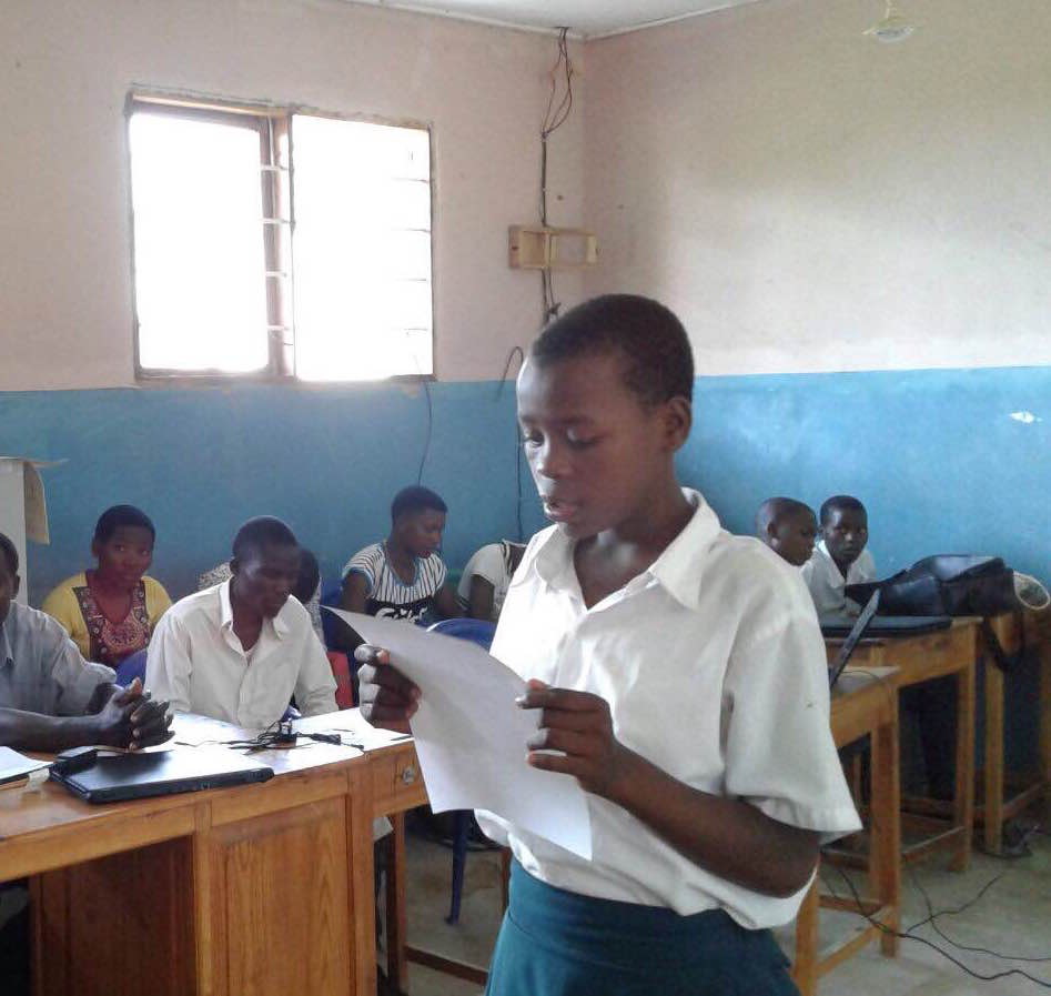 Eva Tolage, right, reads her letter to the Tanzanian government to her District Commissioner. (Photo credit: Restless Development)