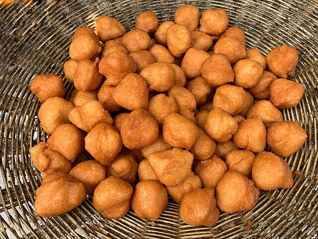 This Nigerian breakfast is deep-fried and made from peeled black-eyed beans and cooked with spices. Though typical as a breakfast, this is a great snack that can be eaten at any time of the day. It is often eaten with pap(ogi), a custard made from corn.