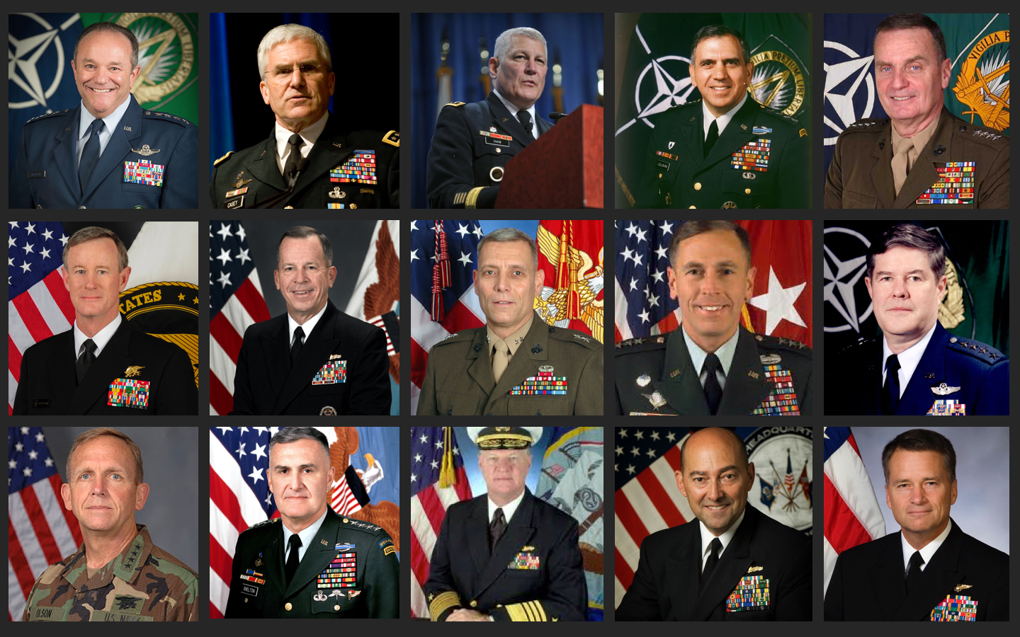 The testimony was signed by (listed alphabetically): General Philip Breedlove, USAF (Ret.); General George Casey, USA (Ret.); General Carter Ham, USA (Ret.); General James Jones, USMC (Ret.); General George Joulwan, USA (Ret.); General Stanley McChrystal, USA (Ret.); Admiral William McRaven, USNA (Ret.); Admiral Michael Mullen, USN (Ret.); Admiral Eric Olson, USN (Ret.); General John Paxton, USMC (Ret.); General David Petraeus, USA (Ret.); General Joe Ralston, USAF (Ret.); Admiral Gary Roughead, USN (Ret.); General Hugh Shelton USA, (Ret.); Admiral James Stavridis, USN (Ret.); and Admiral Sandy Winnefeld, USN (Ret.).