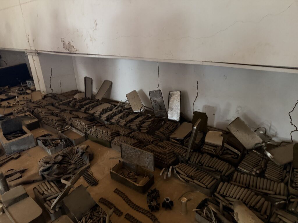 The museum is now also home to a more modern exhibit: the artifacts of war. Thousands of rounds and shells, piled in a single room are all found on or around the museum grounds.